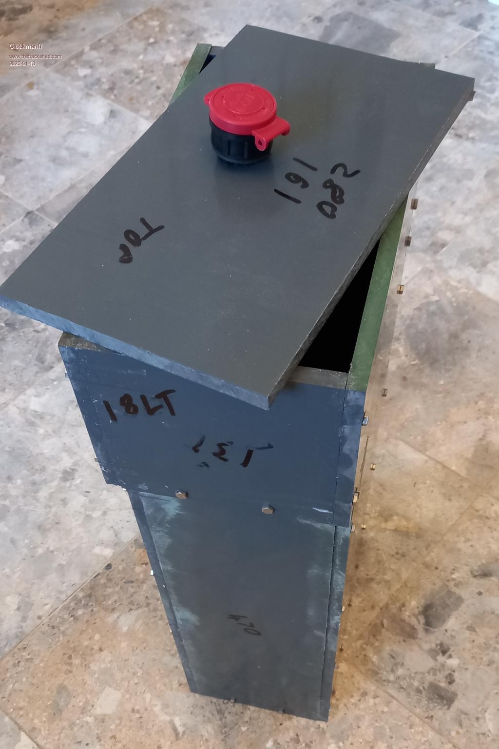 Polypropelene bucket when testing the battery and if it gets hot under tests.