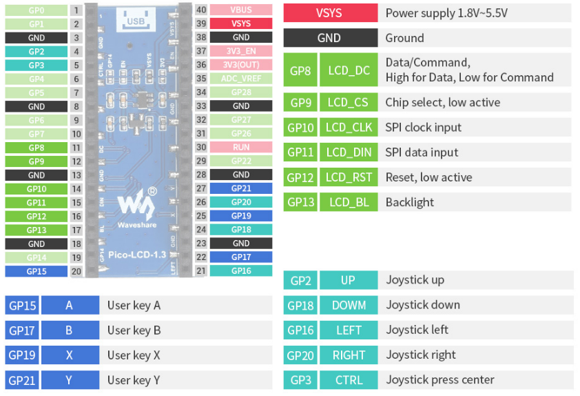 NPH. You said you were checking other Waveshare boards. Been meaning to check their site. https://www.waveshare.com/product/raspberry-pi/boards-kits/raspberry-pi-pico-cat/pico-lcd-1.3.htm ssd1306 is just 2 wires. my 1st scope 8 bit. still neat display i2c is nice, like a port expander, range finder and display off same 2 pins, no pull-ups. ![]() Edited 2023-09-18 07:20 by stanleyella |