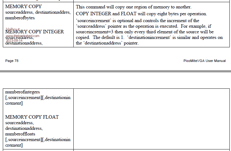 Assume you have an array A!() that is size X (1024) Your display area is S (320) Then you create (DIM) an array T!() that is size X-S (in this case 1024-320=704) DIM T!(X-S) You copy the first X-S values from array A!() into T!() You do a dummy=MATH(MIN T!(),trigger) trigger will be a pointer that is between 0 and X-S in array T!() Use the same trigger as a pointer in array A!() and you will always have sufficient display points for your window. copying part of an array into another can be done using MEMORY COPY FLOAT ![]() The memory address you get from PEEK(VARADDR ) ![]() So the code for that would be (untested !! currently no pico at hand) MEMORY COPY FLOAT PEEK(VARADDR A!()), PEEK(VARADDR T!()), X-S This would be a relatively fast way of doing it... Volhout Edited 2023-09-14 17:21 by Volhout PicomiteVGA PETSCII ROBOTS |