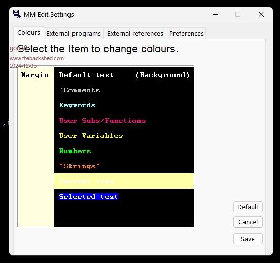 I had no problems changing the current line to something darker. ![]() I assume you changed the colours in "Preferences". Just click on the "current line" text and choose your colour. I hate dark themes so I have not tried to find a suitable combination, but each to his own... Jim VK7JH MMedit |