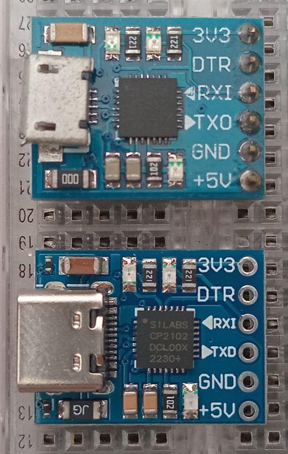 Interestingly, the top module(micro-USB) in this photo, the chip is "Blank" - no markings, so most likely a clone.  The TXD and RXD leds that NORMALLY blink on these modules, don't on this one, and the silkscreen is pretty flaky.