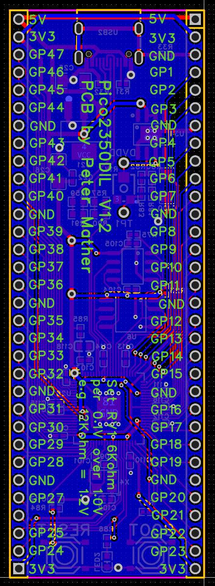 Works perfectly ![]() Next job to fit a PSRAM and see if it affects the overclock. Currently I've got the DVDD set to 1.35V which is less than I use with the internal switch mode supply. Once all sorted I'll start a new thread with a sensible title to post the gerbers ![]() |