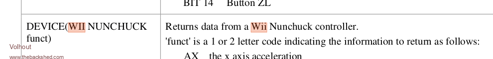 The function should be DEVICE(NUNCHUCK funct). The text WII should be removed.