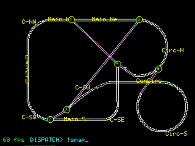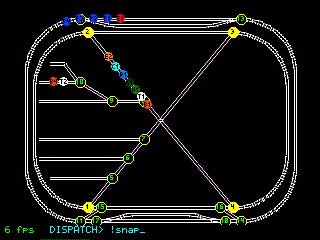 You drive the trains by typing commands (on PC/laptop keyboard--I don't have a keyboard attached to the PCB) at the "DISPATCH>" prompt on the Screen/LCD. For instance, s6+ve1 20 will flip switch 6 out of spur2 and start up the train behind Engine E1.