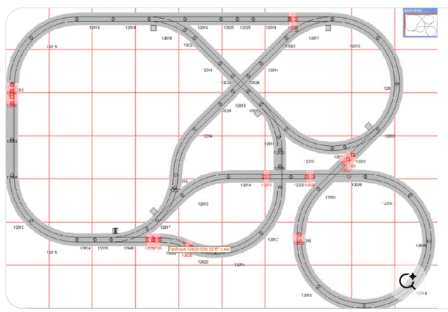 I got it to where it would render, but trains would jump around crazily. So I realized that the original layouts (produced by Gemini through my describing them--much simpler than this one) all had their x1,y1 ends with lower x (or y if x1=x2) first. I had not done them this way by hand, and just randomly as was easiest. Each segment has a Next1 and a Next2 (and switches a Next3) indicating the segments the current one is attached to. So I went through and swapped Next1 and Next2 until they aligned with x1,y1 and x2,y2. The trains all ran fine.