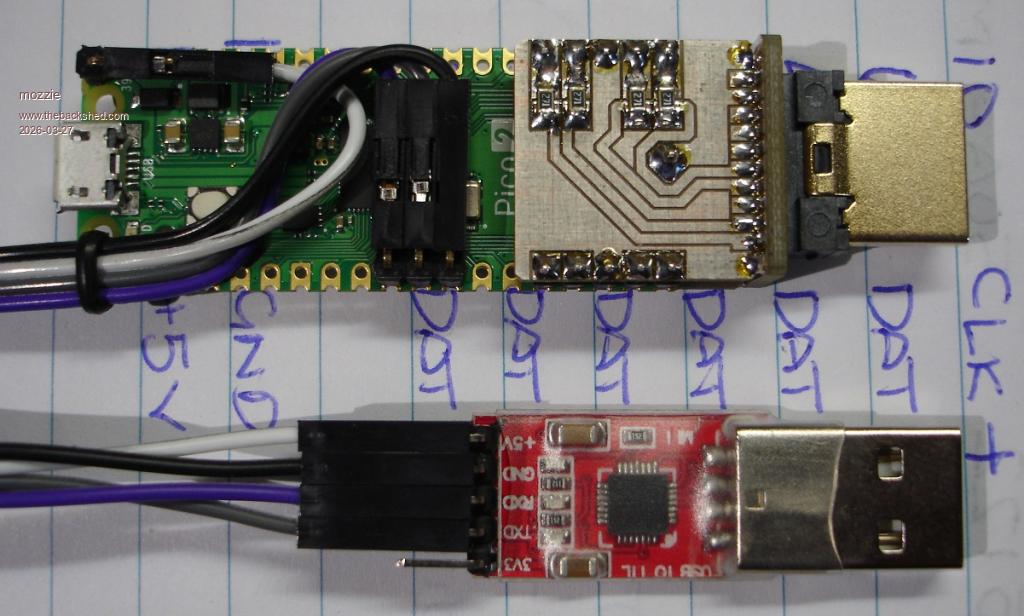 G'day, A bit of reading through the HDMI spec has shown that only HDMI SOURCE devices supply 5V, HDMI SINK devices (monitors / TV's etc) do not. Sadly this means for this type of "PICO_STICK" device we need an external source of power. This being the case, the external USB-Serial device is either plugged into the monitor etc for power or into the PC for power / console. ![]() A wireless keyboard dongle plugged in and off you go ![]() @DDDNS The HDMI sockets do appear to be more robust by design. The extension on the rear of the HDMI plug fits through a milled slot in the PCB and is soldered from the rear, pretty solid. As usual, this is just a proof of concept but it seems like a great idea if someone makes a "proper" version. P.S. This still fits within the outline of the "over-mold" shown in the HDMI spec, this allows approx 21x11.5mm outline (unit is 11x20mm) Regards, Lyle. Edited 2026-03-27 14:52 by mozzie |