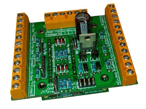 It has support for 6 alarm sectors (12 if Zone doubling is utilised), it has two transistor driven outputs that can go to Relay PCBs or direct drive of 12V 500mA max sirens/ Strobe lights. It also has 2 Comm ports for connection to, for instance, 3G Modem Dialers or other devices. I have also added support for wiegand Protocol, but this may or may not be possible to `bitbang' on the uMite.