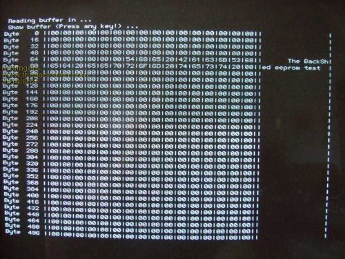 ' ERASE WHOLE EEPROM (fill with zero) ' using PAGE WRITE '************************************** Sub eeErase Dim fill(34) ' fill will contain 2 bytes for address + 32 fillbytes I2CADDR=&H57 ' 24C32-DS3231 K=&H00 'zero value or some fill value For i = 2 To 34:fill(i)=K: Next i Print "Erasing ..." I2C open 100,100 'ENABLE I2C For J=&h0 To &hF 'MSB For I=&h0 To &hFF Step 32'LSB fill(0)=j:fill(1)=i 'fill(0)+(1) = MSB + LSB I2C write I2CADDR, 0,34,fill(0) Pause 5 '? Write needs some time ... If MM.I2C <>0 Then Print "1=NAK 2=TIMEOUT"; MM.I2C,j,i:End:EndIf Next i L=(j*256+I) Print "Byte ";L, " ";Chr$(13); Next j I2C close Print "EEPROM HAS BEEN ERASED " End Sub Seems to be somewhat faster! The "Page Write" reminds me of the old days with 8086-Assembler, DOS and the "memory segmentation" (in german: Speichersegmentierung).