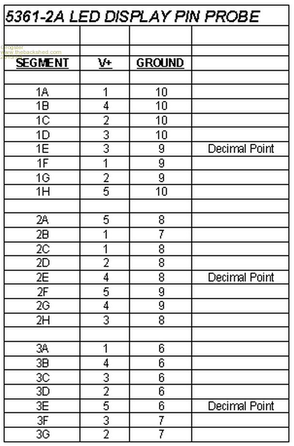 EDIT: Last line is missing from the chart. Segment 3H: V+=4, GND=7. Smoke makes things work. When the smoke gets out, it stops! |