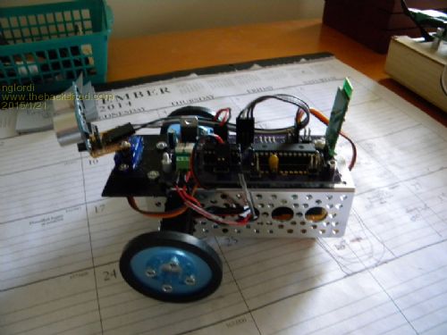 The attached figure (robot.jpg) shows my micromite controlled robot. It consists of an Actobotics platform with a with a control board (umiterc.gif) designed to interface the micromite with a L293D motor controller. The board allows easy connection of up to 3 servos, a ping, bluetooth module and an IR remote sensor (not shown). Two Li-Ion rechargeable batteries power the board. A 3V battery powers the micromite and the bluetooth module. A 9V bsattery regulated to 5V powers all other components. One can select either 5V or 9V to power the motors. The attached MicromiteRCL.pdf file is a document which describes the micromite robot control language. The second document, uMiteCode.pdf, lists the actual code. I would appreciate any comments, suggestions, etc. Nick