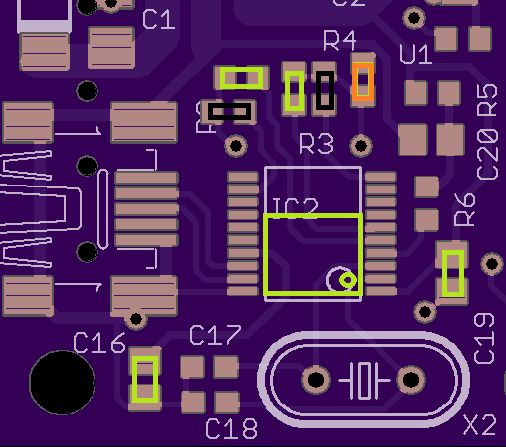 i/o via the 14 pin uart, eg mcp2221a or pic1455 : this shows the component placements in green. Use the two green resistor placements instead of the black. The orange one is the same regardless. ![]() The crystal, etc, are only required for the older mcp2200...time to save some space by chopping that option I think... |