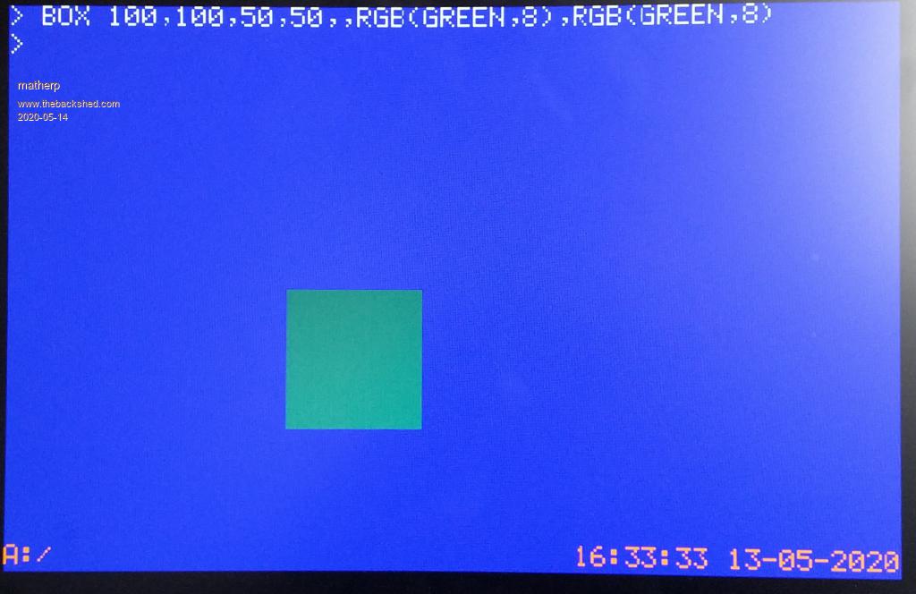 As explained earlier, 8-bit colour modes use a lookup table to convert from a single byte of information to the RGB565 pixel that will be displayed. In the CMM2 firmware the 8-bits are treated as a RGB332 pixel and are mapped to the most appropriate RGB565 value.