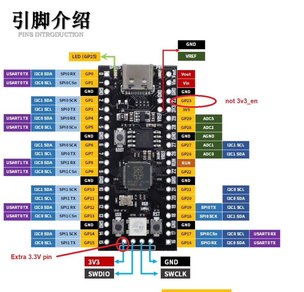 The only difference is pin 37 is GP23 instead of 3v3_en and an extra 3.3v pin on the bottom edge of the board next to the SDIO pin ![]() it's now only $4.6o including postage |