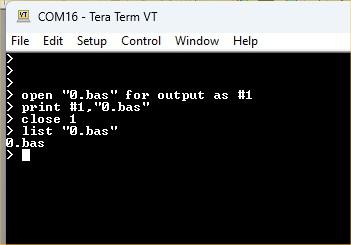 Hi Peter, that's weird! Open "testprint.txt" For output As #1 Print #1,"%&"+"0.bas"+"&%" Print #1,"0.bas" Print #1,"%&"+"1.bas"+"&%" Print #1,"1.bas" Close #1 I get this with edit: .bas %&1.bas&% 1 .bas > list"testprint.txt" %&0.bas&% 0.bas %&1.bas&% 1.bas With Notepad++ (Windows) At the moment I have no way of connecting an SD card. I just wanted you to be informed. There is a workaround, but it's not very elegant. Thanks for looking at this issue! Best regards Michael causality ≠ correlation ≠ coincidence |