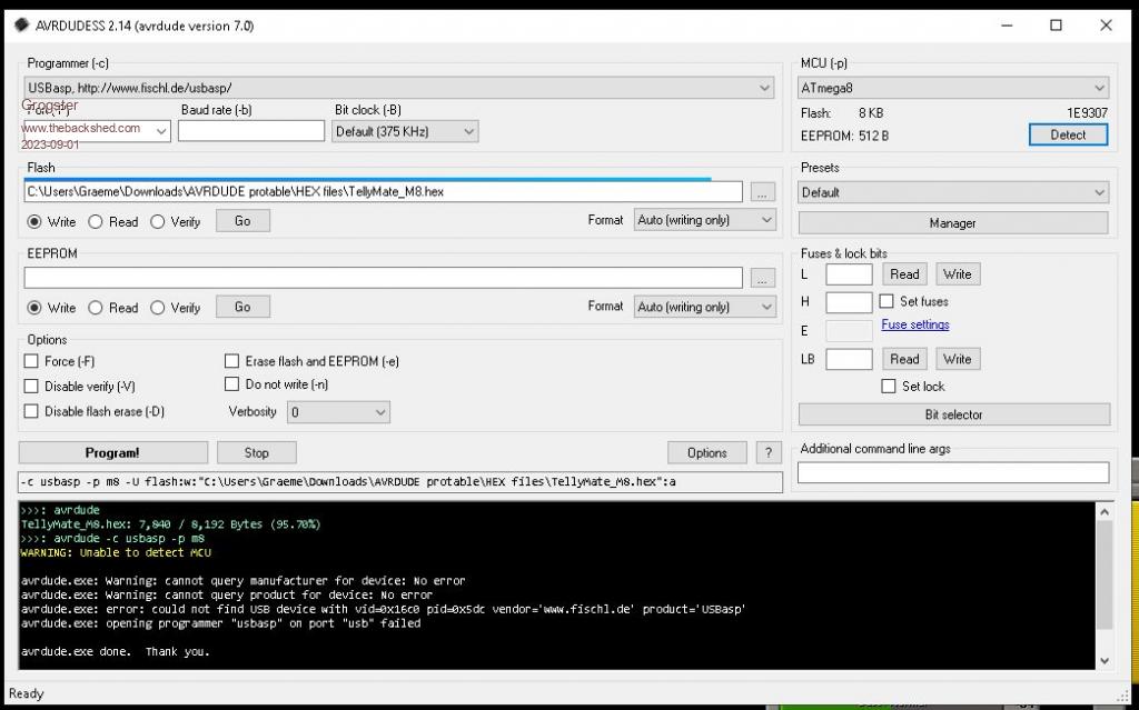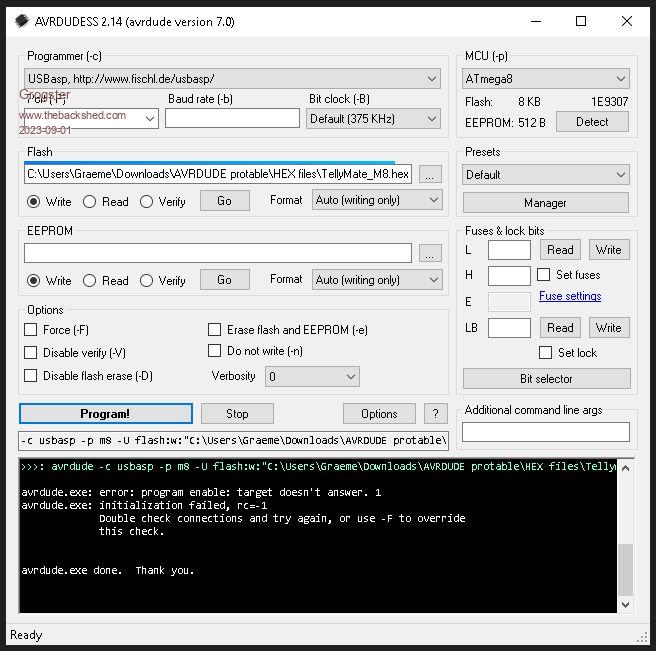 Owwwww - "Detected 1e9307 = Atmega8"....