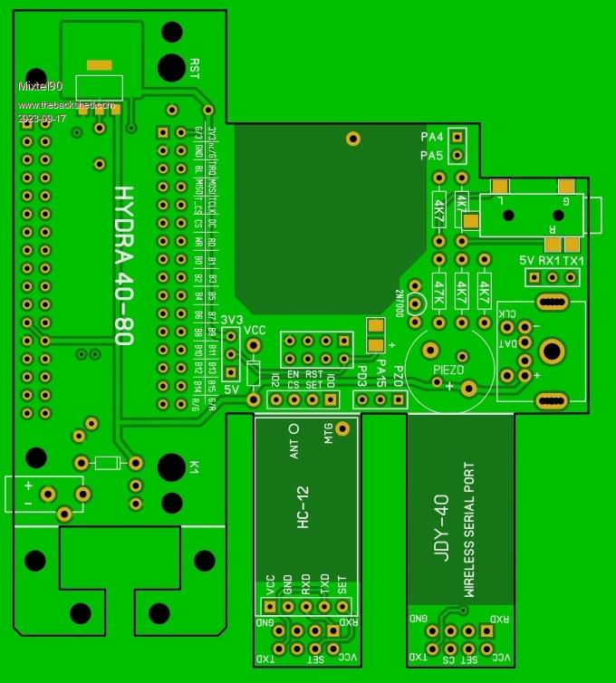 This is the version for the 4" 800x480 display: The Hydra 40-80 Gerbers: Hydra 40-80.zip No instructions yet, I've not got around to it. :) This one is a more complex shape than usual and is a 4-layer board so it will very likely cost a little more to get it made. Edited 2023-09-17 22:38 by Mixtel90 Mick Zilog Inside! nascom.info for Nascom & Gemini Preliminary MMBasic docs & my PCB designs |