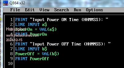Is there is any mistake by me (PICOMITE)? Try this: PRINT "Input Power ON Time (HHMMSS): " INPUT a$ PowerOn = VAL(a$) : PAUSE 50 PRINT PowerOn PRINT "Input Power OFF Time (HHMMSS): " INPUT b$ PowerOff = VAL(b$) : pause 50 PRINT PowerOff ...and you will see that after the 1st. "Input" command input the software will jump over the 2nd. "Input" command line without any input. > RUN Input Power ON Time (HHMMSS): ? 150000 150000 Input Power OFF Time (HHMMSS): ? 0 What I did wrong???? Edited 2023-12-15 13:55 by Hansaplast |