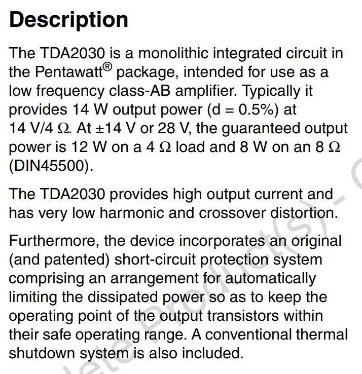 Looks like @ 28v, you can get 12W from it into 4R, which sounds reasonable.