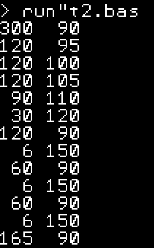 for x% = 0 to 12 for y% = 0 to 1 print right$(space$(3) + str$(BS20min%(x%, y%)), 3) + " "; next y% print next x%