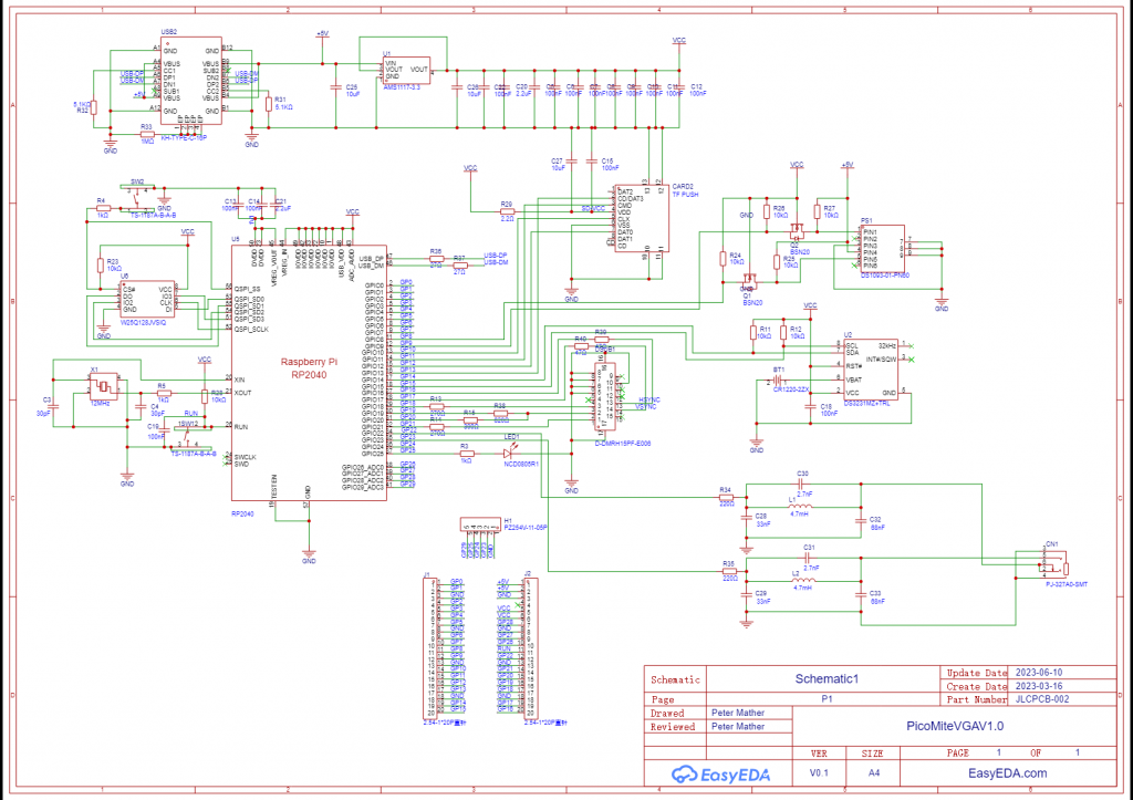 Hi, it's just a PicoMiteVGA. It's built on a piece of proto board. I wasn't aware there was a special board. Is there a schematic for this board so I could build it myself? ![]() PicoMiteVGA10_scheme.pdf |