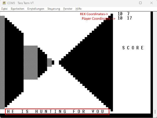 Rex now tries to catch you, but doesn't hurt you yet (for debug reasons) ...