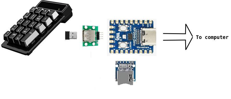 Scruss THANKS for the link I passed it on to a few I know can really use make use of some of what I seen. What I'm working on is a device that can take any USB keyboard/pad and turn it in to a macro keyboard/pad OS independent. USB keyboard/pad plugs in and the device will convert the keys to macros and send them out as if its a main keyboard/pad. Making any keyboard/pad work like the stream decks do. But no buttons on a box. Right now looking at 2 waveshare RPi2040 Zero's. One gets the data from keyboard/pad looks up the macro assigned to the key hit and maybe using spi to 2nd Zero to act as USB keyboard going to computer. Using an SD card would make it easy to change the macros. Hold down a button on 2nd Zero would make the SD card available as a reader so the table can be modified or just plug card in to computer and edit the table. maybe have a display to the macro the key is sending. more to think about there. I have been looking at some others work using CircuitPython to see how to work up the key definitions and how they are represented. Even some mouse functions. Quazee137 I know there are macro keyboards but man the cost $$$$ |