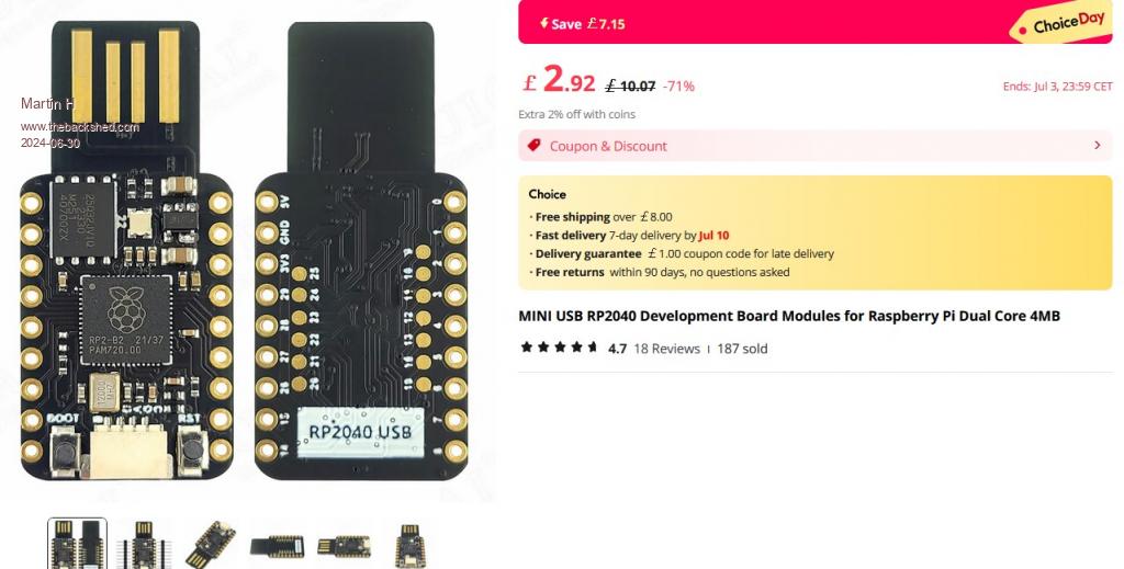 I don’t know why but I posted a blank message Anyway GDay All, I just saw this post for $5AU Pico’s. Postage $8 or free over $50. Cheapest I have seen $5 Pico Regards, Mick (The big one) . Mick's uMite Stuff can be found >>> HERE (Kindly hosted by Dontronics) <<< |