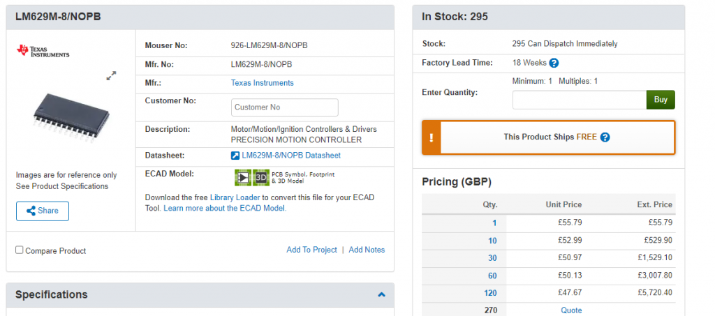 @Rickard5 It can't be overstated, just how great the PicoMite has become for proper motion control, thanks to the PIO. A very common dedicated motion chip is the LM628/629. The PicoMite blows it out of the water....look at what it costs: ![]() The MMBasic code is ridiculously simple and I can provide all that you need. We have: -Standard PID -Advanced PID (sounds grander than it actually is) which includes Acceleration Feedforward, Velocity Feedforward, Offset, Torque Limit, etc. -Full velocity profiler which consists of: Acceleration (ramp-up) in encoder-counts/sec/sec (no time delay nonsense) Velocity (continuous) in encoder-counts/sec Deceleration (ramp-down) in encoder counts/sec/sec @Volhout modified existing encoder-counting (quadrature decode) PIO code to work with MMBasic and it's absolutely rock-solid. I've had my small motor running @6,000RPM with 2,000 encoder counts/rev. This is absolutely trivial for this device. Lots of lathe hobbyists employ the method cited by Phil99 which works fine BUT if you want some real fun..... You'll be playing for hours, just commanding your motor to do anything you want it to do with perfect precision. Turn the motor power off and push the spindle out-of-position by hand, turn the motor power back on and the spindle will jump right back to perfect position. The PicoMite can handle multiple encoders so you can synchronize for threading purposes and even have a standard MPG (manual pulse generator) to jog the axis. Outstanding and I've been a motion specialist for 40 years ![]() Edited 2024-08-12 16:31 by PhenixRising |