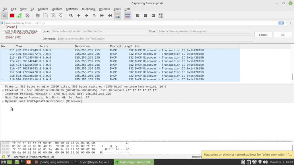 Now thanks to Andy I downloaded wireshark for linux in the software centre and doing a scan on enp1s0 there is no activity. I was fooled at first as the scan was pointed a wsp1s0.
