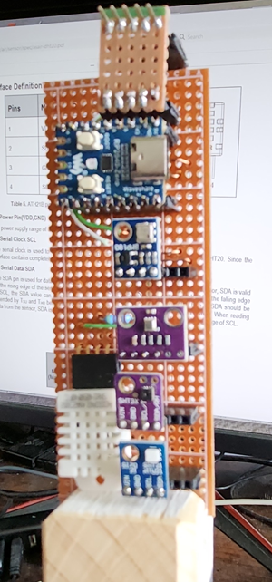 The humidity readings are a fraud! The DHT and AHT sensors are currently sealed in a jar with some silica gel. We had some very high humidity recently resulting in the DHT11 reading 12% above the AHT10. It will be in "therapy" for a few days to recover. |