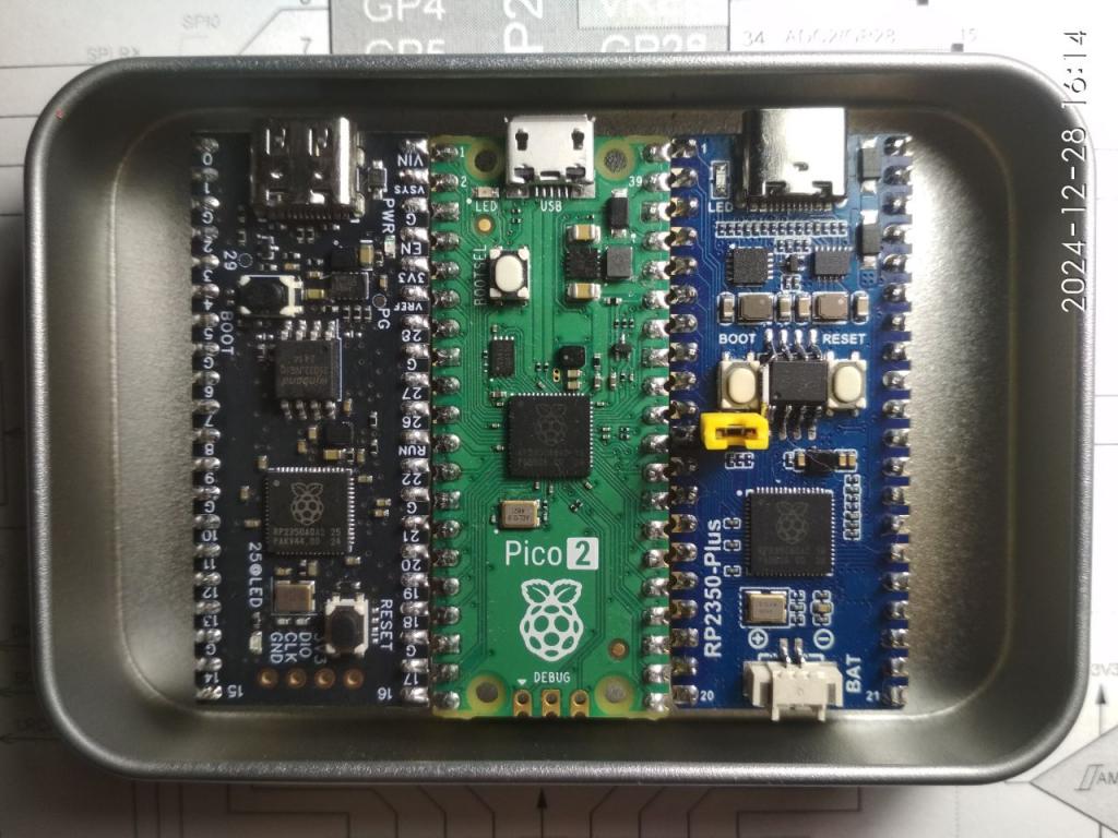 "Black Pico2" from WeAct RP2350A-V10 or V20 is also suitable for soldering the PSRAM memory chip on top and is not expensive. ![]() https://www.aliexpress.com/item/32778272059.html https://www.aliexpress.com/item/1005008142140656.html |