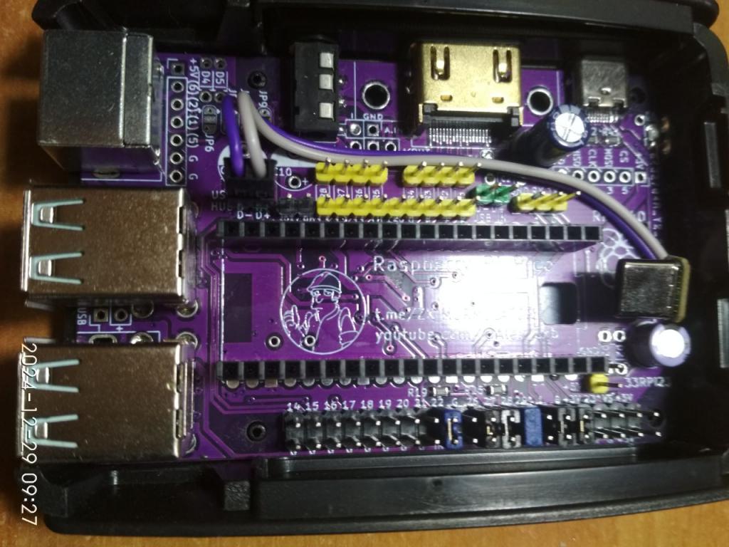 I think that with desire and due skill everything is possible! You can solder a PBS connector to the board pads and put a Pico2 module with soldered PLS pins on it. These Pico2 clones also have USB line pads at the bottom, but they do not match the original Pico2 board. Therefore, you can solder wires to them or take them from the USB Type-C connector itself (as shown in the photo) |