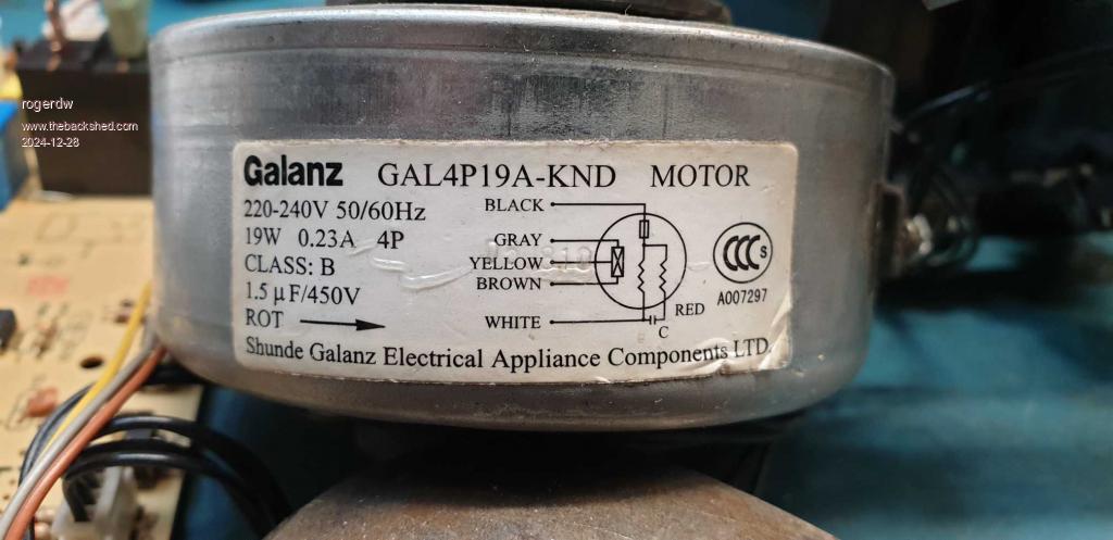The motor is a Galanz GAL4P19A-KND 240V 19W