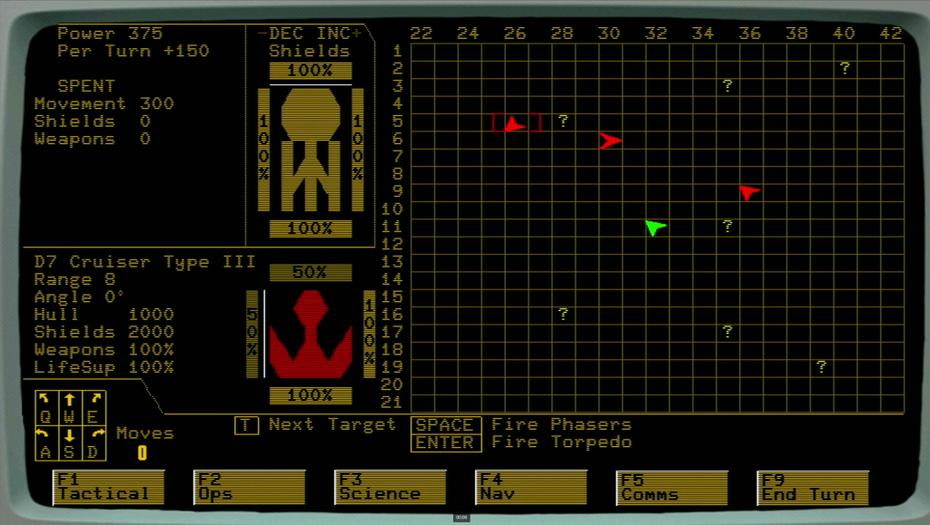 Thanks! The irony of that quote is that the entire history of Star Trek has ignored the third dimension. Ships always meet up on a flat plane, all facing the same way up. ![]() Maybe that's what makes it ideal for a simplified space sim like this. It's really more akin to a sea based naval battle. |