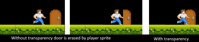 Dev update: My current problem is that the screen redraw is very slow, taking about 250 milliseconds to redraw the full screen. Normally this wouldn't be much of an issue for a turn based game (the screen isn't being redrawn 99% of the time), but I want to improve it for two reasons. 1. When the player moves their ship, there is a 250ms lag between the keypress and the ship moving. I know that sounds small, but it is noticeable and makes the whole program feel sluggish. 2. I want to do some fairly high speed animations (explosions, warp etc.). And 4 frames per second just isn't going to cut it. On that note - one of the things I'm trying to achieve with the retro-ASCII graphics, is to lull the player into buying into the old VT terminal interface, and then when something spectacular happens, an ASCII ship explosion for example, it has far more impact. If you ever watch the movie Galaxy Quest, it uses this downplaying method to great effect. The first part of the show, when they are on the TV show is shot in 4:3 ratio. You don't really notice it. Then it opens up to slightly widescreen when they are out of the show and in the real world. But when Tim Allen's character first sees the hanger doors of the space ship open to the void of space, the image matches the doors opening to expand to full widescreen. That's the kind of wow factor I want recreate - where we're showing people what looks to be a text based display - but is in fact a fully bitmapped display. Of course, I could just go straight to using 65K colour graphics, but that would ruin the effect. I have to walk the fine line between this being a retro-text terminal display… but also able to do some cool things with those text characters. Before I dive into specifics of my speed issue, I figure that some very basic knowledge might help if you're new to the CMM2/games programming. Therefore, I'm going to give a quick overview as to how the graphics are organised. If you're familiar with double-buffering and blitting, then you can safely skip this post and go on to the next one. You won't be missing out on anything. We're using Mode 1 - 16 bits for the graphics. That is 800x600 pixels with 65,000 colours. Because we are using a font that is 10x20 pixels, this gives us about 80 columns of text across the screen and 30 lines. It's slightly less because of the Bezel image I'm using around the outside to make it look retro. The 1st Generation CMM2 can store 3 of these Mode 1 graphics pages in memory (numbered 0, 1 & 2). I could increase this to 6 pages by dropping down to 8-bit/256 colour mode - but I really like the bezel (which doesn't look as good in 8 bit mode), and because we are using fonts instead of bitmapped graphics, we don't really need the extra pages. We can think of these three pages of video memory as three blank sheets of paper. We can show any of them to the user at any time. If we were just to use page 0, then we would be using one sheet of paper - drawing each frame, then erasing it, then drawing the next frame over the top of it. Unfortunately, the user would see the page being cleared for a split second before everything is redrawn, and this would be an annoying flicker on the screen with each redraw. So, to get rid of this flicker, we alternate between drawing on pages 0 and 1, and we show the user the other page. So, if I want to refresh the image on the screen, I show the user page 1, and I draw on page 0. When I have finished drawing, I swap the sheets of paper over and show the user page 0 and clear page 1 ready for the next image. We keep swapping back and forth like this and the user sees a seamless animation with no flicker. The call to change which page the user can see is almost instantaneous - so you can achieve very high frame rates with this method. This is very common in games programming and is called double-buffering and is critical in action games where sprites are moving around the screen many times per second. Next, I'm going to mention Blitting a lot. Blitting is simply the method used to copy one piece of graphics memory to another. So, I could have an image of a space ship on graphics page 2 at position 0,0 with a width and height of 50 pixels. I can "blit" that rectangular image very quickly from page 2 onto any location on the draw screen. The original copy stays on page 2, but by doing this I can quickly "draw" multiple graphical elements on my screen. So, for something like space invaders for example, we would have one image for the space invader on page 2, but we would copy it 20 or 30 times on to the draw screen to build up the image of a swarm of separate invaders. A typical sprite sheet is shown below. By blitting portions of it on to the game screen we can quickly build up quite a complex image. The final thing to know about blitting is that it's very quick if you're overwriting the entire rectangle. However if you want to blit a rectangle with a transparency (for example, a player sprite walking in front of a building), then one of the colours (black) will be designated as "transparent" and will not be copied over to the new image. In the images below, you can see what would happen if we didn't use transparency (left image) when the player character starts to erase the door image. So we would draw the player character with transparency, so that we can do not destroy the image behind the player sprite. The only thing you need to know about this is that transparency does slow down the draw speed a little bit. That's it - you're now up to speed on everything you need to know to understand my next post. |