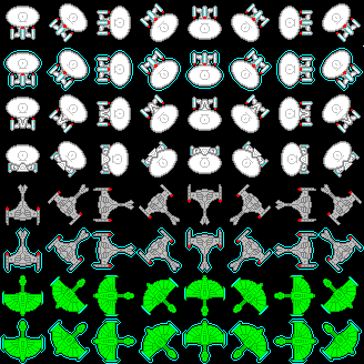 Apropos of nothing very much here are some assets I created 30+ years ago for a Visual Basic game that never went very far: ![]() ![]() ![]() Edit: The cyan outlines are for cloaked ships. And the full set of assets including some less interesting UI elements: GRAPHICS.zip Best wishes, Tom Edited 2025-01-11 04:44 by thwill MMBasic for Linux, Game*Mite, CMM2 Welcome Tape, Creaky old text adventures |