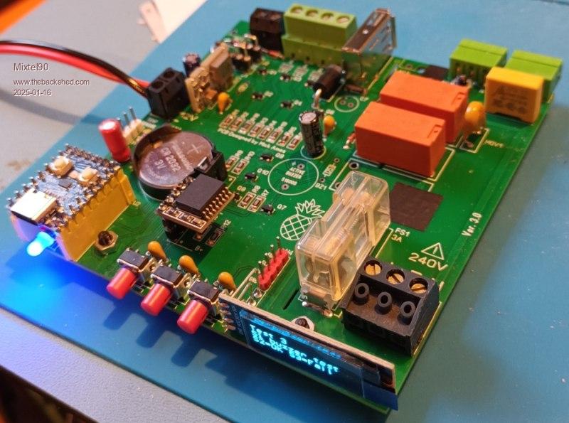 The prototype version is runnable, but I've made several enhancements to it since. I've made it more general purpose, hence giving this board its own thread. I've also created a test program so if you build one you can check that it works before using it in a project. It's handy to have in a flash slot as you can toggle the outputs. I did this to close the relays when insulation testing the mains side.