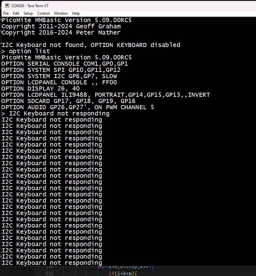 - "PRESS ANY KEY ...", which is what MMBasic would prompt for the LIST command ... but again that's not beyond coincidence.