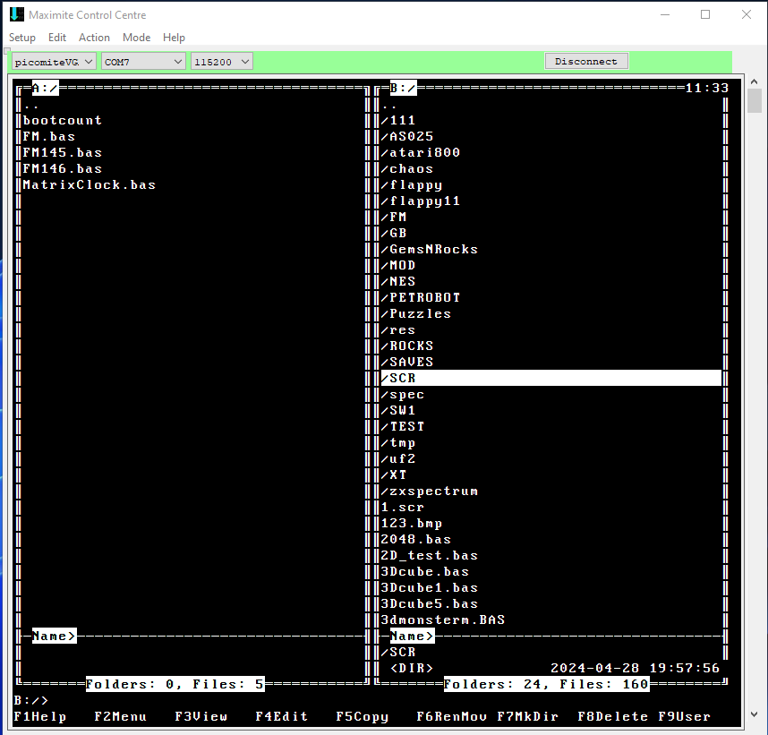 If I may make 1 suggestion for PicoMite VGA/HDMI: In MMCC filemanager, when you open the filemanager, send "MODE 1" before you start the interaction with FILES and XMODEM.