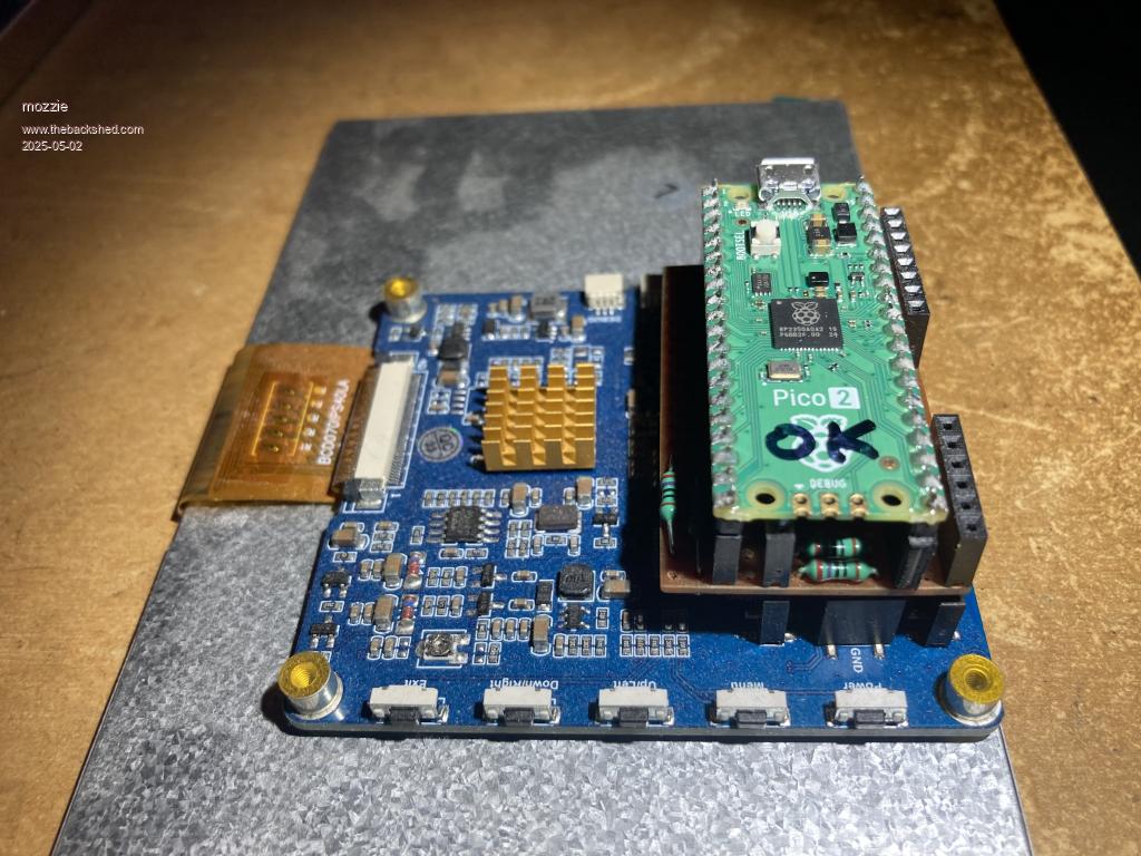 In theory one could make a hardware adapter to accept a Pico 2 and with a 40-pin plug on it to plug into the Waveshare socket. That would be an interesting exercise. A bit pointless as you can't have 1024x600 resolution though. . Edited 2025-05-01 22:05 by Mixtel90 Mick Zilog Inside! nascom.info for Nascom & Gemini Preliminary MMBasic docs & my PCB designs |