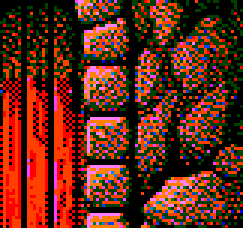 RGB121: ![]() ![]() Just used my little MMB4Windows Program (MMB4L should also di the job): FN$="sandy-beach":W=240:H=160 '--------------------------------- mode 1 load png FN$+".png" for y=0 to h for x=0 to w cl%=0 n=Pixel(x,y)AND &HFFFFFF r=n AND &HFF if r>96 and r<128 then if (y mod 2)then R=255*(x mod 2) else R=255*not (x mod 2) endif end if inc cl%,255*(r>127):n=int(n/256) g=n AND &HFF select case g case >191 inc cl%,&HFF00 goto weiter case >127 inc cl%,&H8000 goto weiter case >63 inc cl%,&H4000 end select weiter: n=int(n/256) b=n AND &HFF:inc cl%,&Hff0000*(b>64) pixel x,y,cl% next: next save image FN$+".bmp",0,0,w,h Edited 2025-06-07 20:39 by Martin H. 'no comment |
