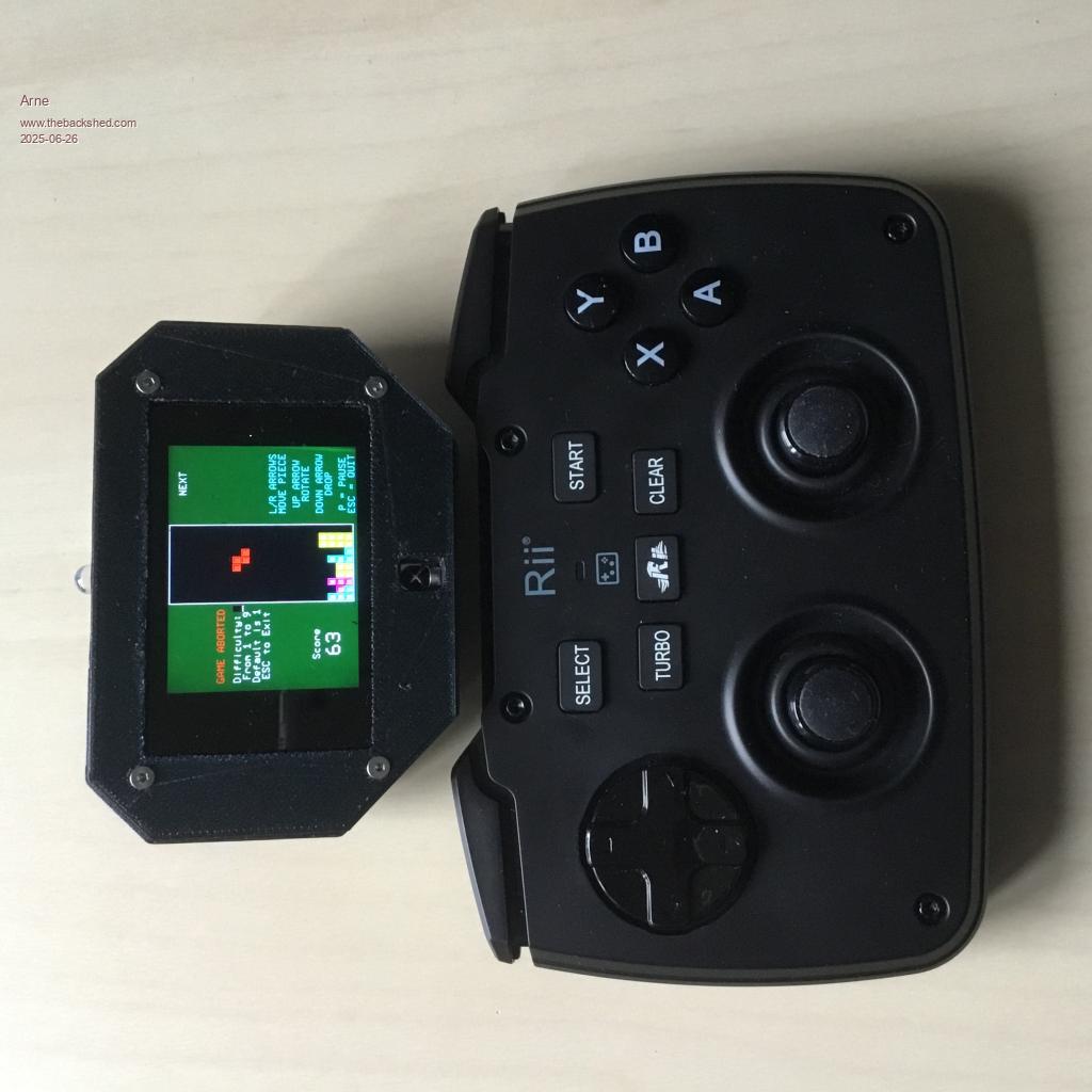 Last year, Geoff used the idea and changed the form factor. He used the same LCD, but a different RP2040 board, charger, audio amplifier, but it is compatible with the Game*Mite. Big pro: he designed a housing. Big con: no expansion connector.