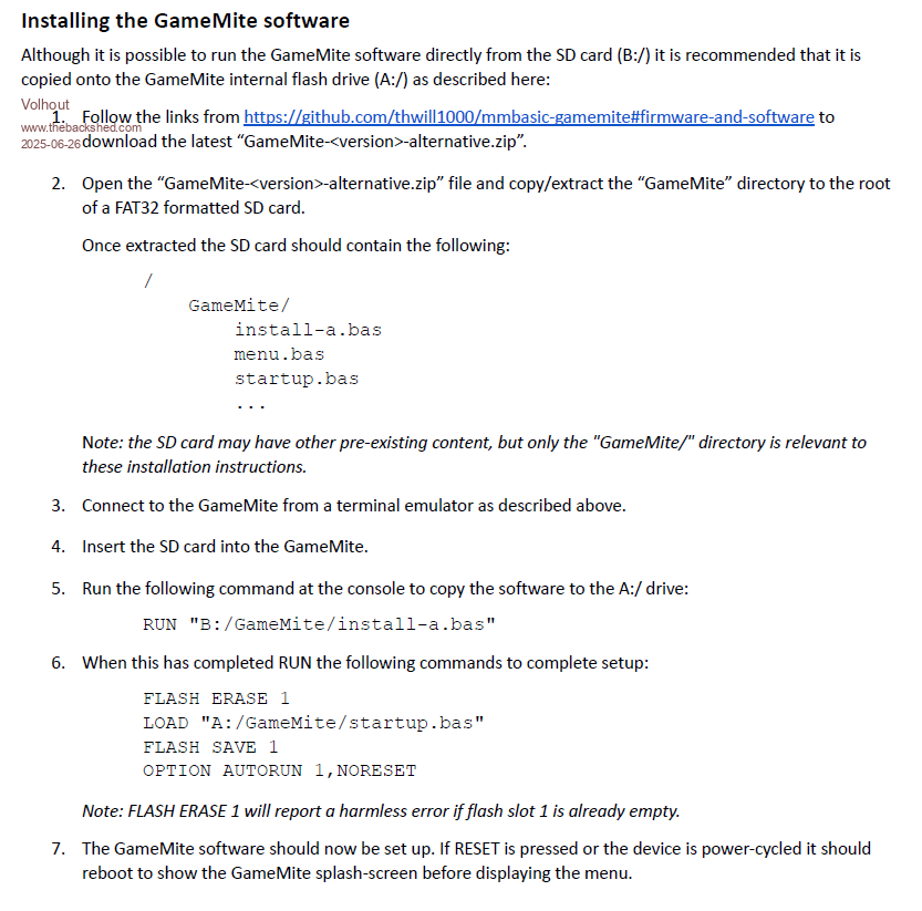 After reboot you should have a working Game*Mite with 6.00.02 PicoMite firmware.