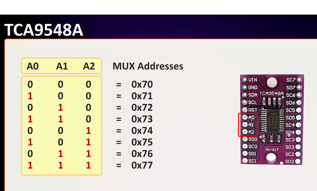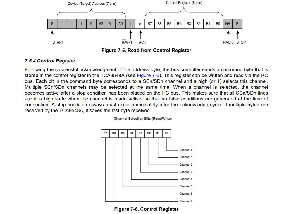 I don't get this. the tca has address so writing 2 bytes to it to set up a device and the register so what channel conected to for each device
