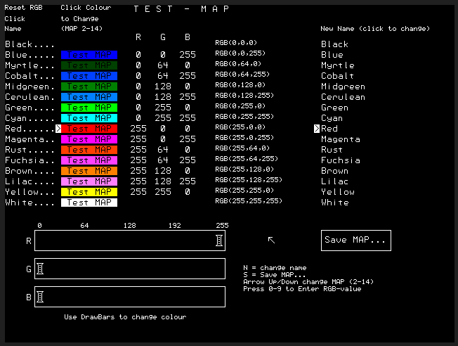 Choosing the right color can sometimes be crucial in how you experience a program or application. I was a little interested in using "DrawBars" to set the RGB values, thinking that this should be easy and cool. You get a different feeling of what happens to the color when changing the value with "DrawBars". But you can also type the values directly.