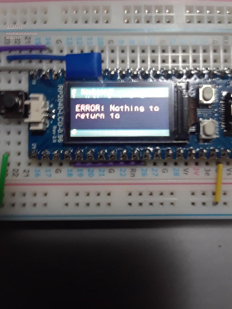 Perhaps Autorun is the problem. It sounds like it is starting to run the program before it has finished loading. Set OPTION AUTORUN OFF until you have everything working properly. F2 starts the program from the command prompt and Ctrl-C stops it. The method I used to load the program was to copy all of the program to the Windows clipboard from the code box in the TBS link I mentioned. Then use AUTOSAVE (in TeraTerm at the MMBasic command prompt press F10) then press Alt-V to paste the code. When it stops scrolling press Ctrl-Z to save it. F2 should start it. Edit. You posted while I was typing, now I see. Error messages go to any attached screen so they can be seen in embedded systems not connected to a computer. Perhaps a Subroutine is trying to return to the main program and failing. Maybe part of the program is missing. Set OPTION AUTORUN OFF then try reloading the program, or press F3 to List it in TeraTerm and compare it with the code in the link. Edited 2025-09-07 16:31 by phil99 |