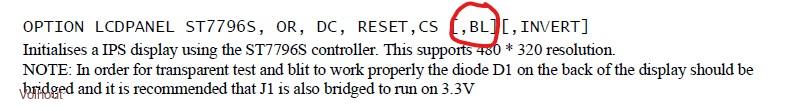 Depends what you are doing, Stan. Bright for fast graphics in a normal room or outdoors, dim for static stuff in a dark room. There's no point in hammering the backlight if you don't need to. :) Sometimes you might run it dim normally an switch to bright for an alarm indication. . Edited 2025-09-13 05:09 by Mixtel90 Mick Zilog Inside! nascom.info for Nascom & Gemini Preliminary MMBasic docs & my PCB designs |