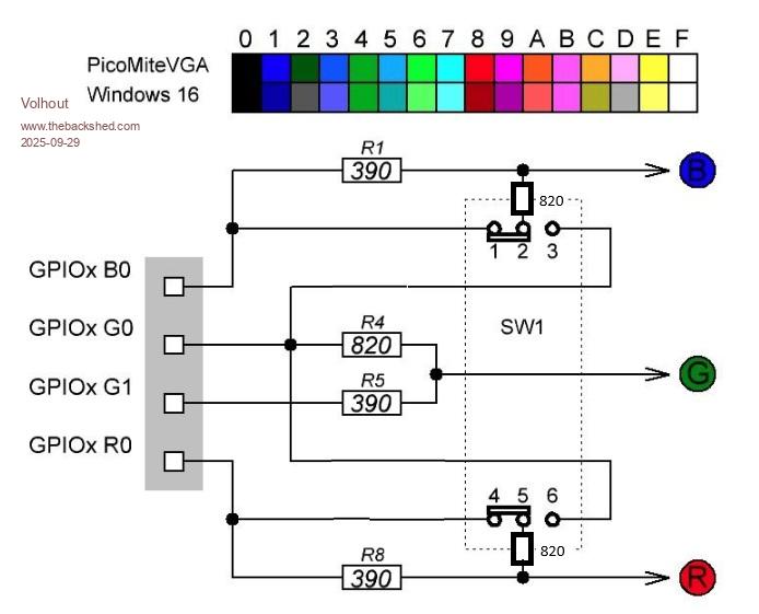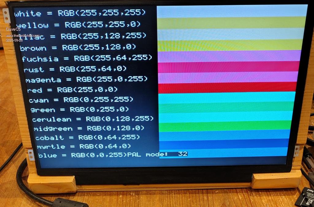 P.S. about VGA palette: I have looked at putting a re-programmable logic block (minimum a GAL22V10) between the RGB pins and the pico outputs to form a true 64 color option. And re-program it from within the MMBasic program. But most of these small logic chips are OTP (one time programmable) and use much power when speed is needed. And then I realized, no-one would use it except me, HDMI is there. So why bother.