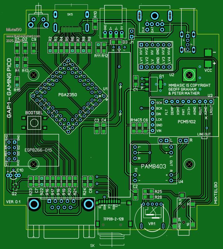 Sometimes I design something just for the pure joy of it. This is one of those. It's unashamedly a gaming machine - probably as close to the CMM2 as I can get using the Pico too. It is intended to be fitted into the Hammond square, translucent blue case so it even has flashy lights to play with. :)
