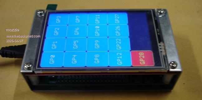 For most of the uses I can think of this should be more than enough. The 2 Pico's are simply mounted piggyback style using short headers and just miss the SD card socket on the rear of the LCD. The test software pulses the GPIO pin shown on the button for 5ms and the GP28 button controls the current layer.
